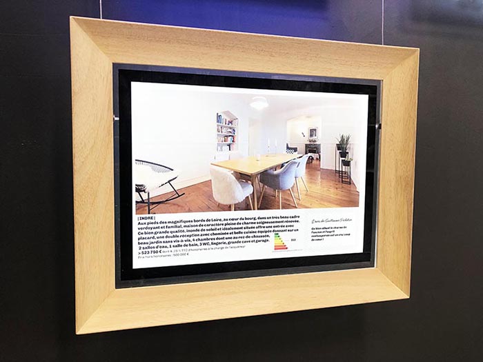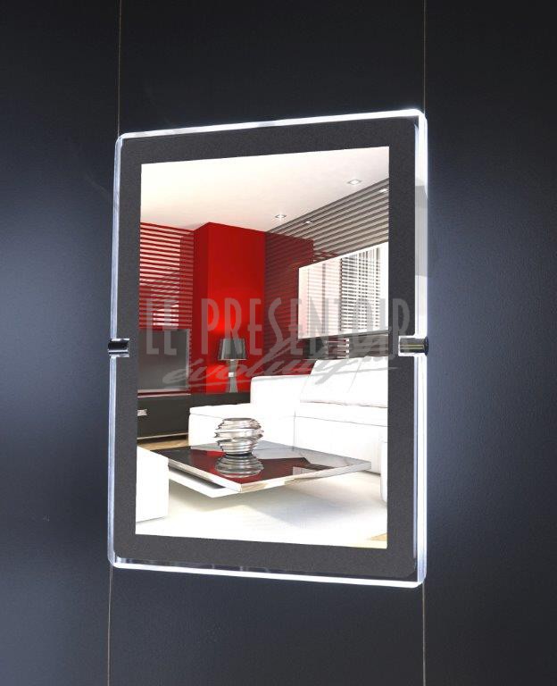 Ce support, produit phare du Présentoir Evolutif, peut s’intégrer à la verticale, à l’horizontal ou incliné dans une vitrine d’agence immobilière par exemple. Les dispositifs LED intégrés rendront vos documents parfaitement visibles de jour comme de nuit.