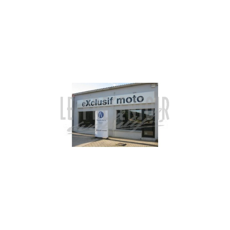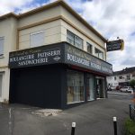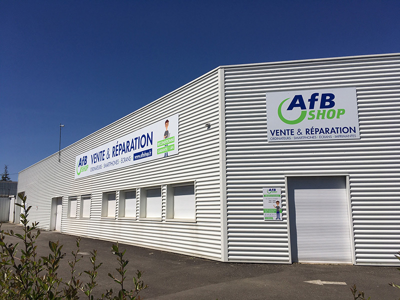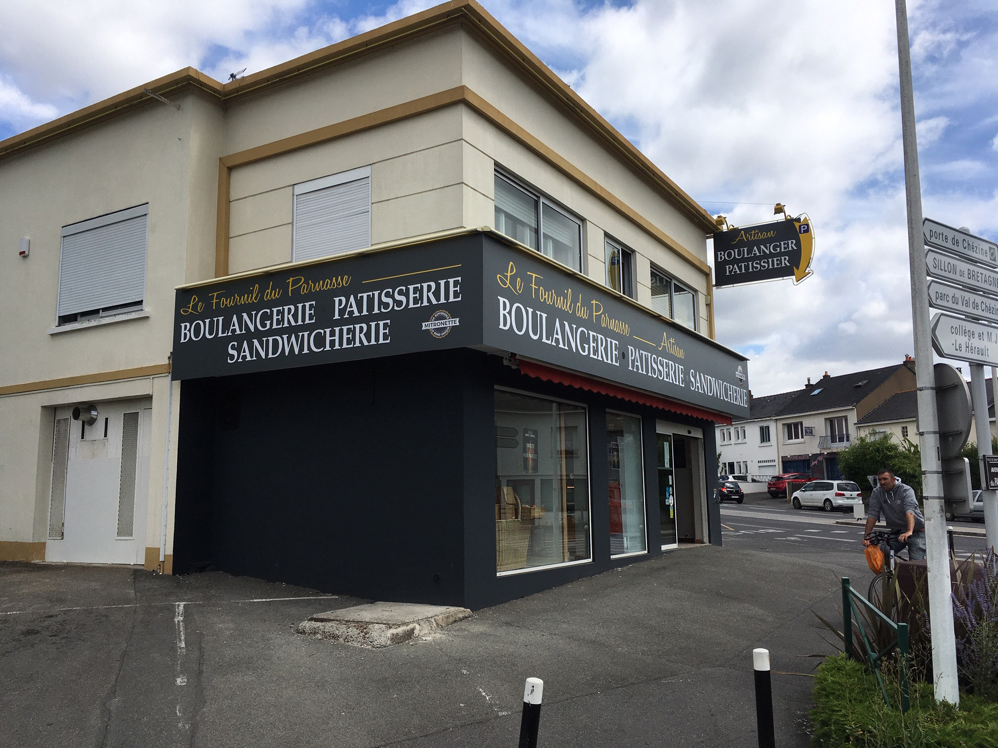 Lettrage adhésif sur tôle. C’est la version la plus économique. Un bandeau lumineux led finira l’ensemble.