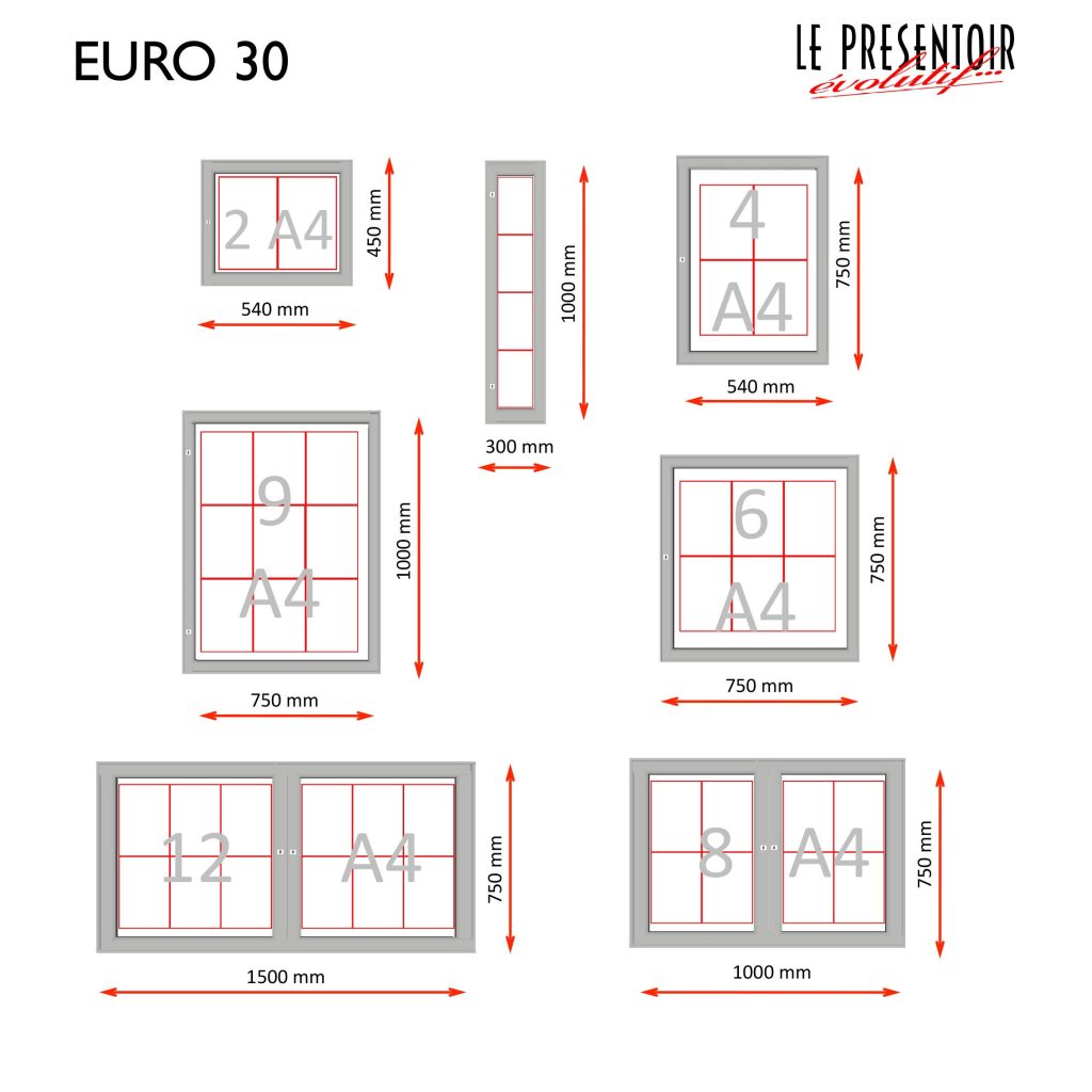 L'étanchéité est assurée par un joint élastomère sur le contour. Les portes sont battantes ou levantes assistées par 2 vérins. Le fond est en tôle galvanisé blanc sur la face intérieure et gris sur la face extérieure. Il peut être assorti à la couleur de la vitrine ou dans une autre teinte. La fixation est murale avec ou sans perçage du fond ou sur poteaux.