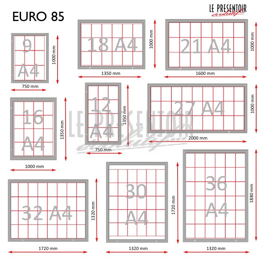 L'ensemble de la gamme est équipée de 2 serrures pour une fermeture parfaite. L'étanchéité est assurée par un joint élastomère sur le contour. Les portes sont battantes ou levantes assistées par 2 vérins. Le fond est en tôle galvanisé blanc sur la face intérieure et gris sur la face extérieure. Il peut être assorti à la couleur de la vitrine ou dans une autre teinte.