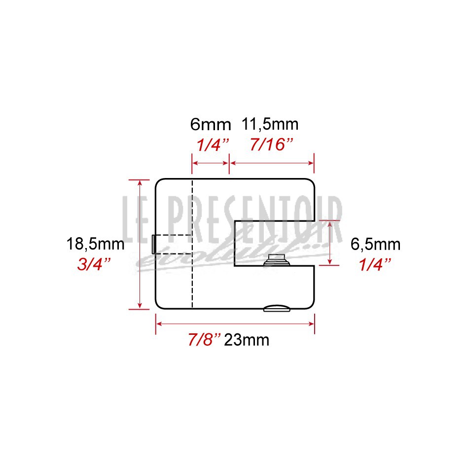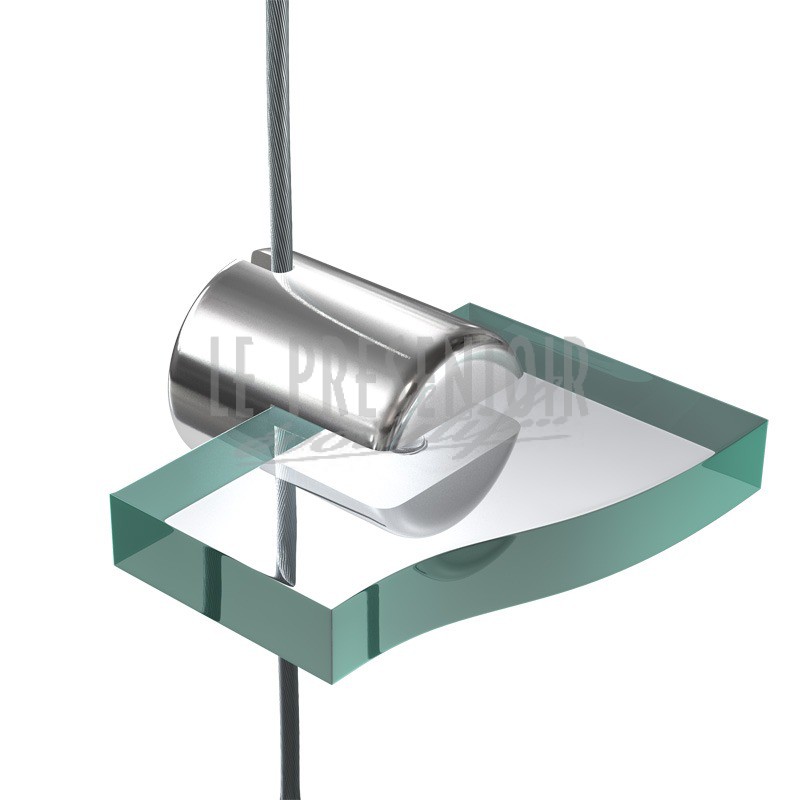 Pince simple pour Tablette épaisseur maxi 6 mm. Réalisation en Aluminium Finition en Anodisé incolore. Montage sur Câble diamètre 1,5 mm.