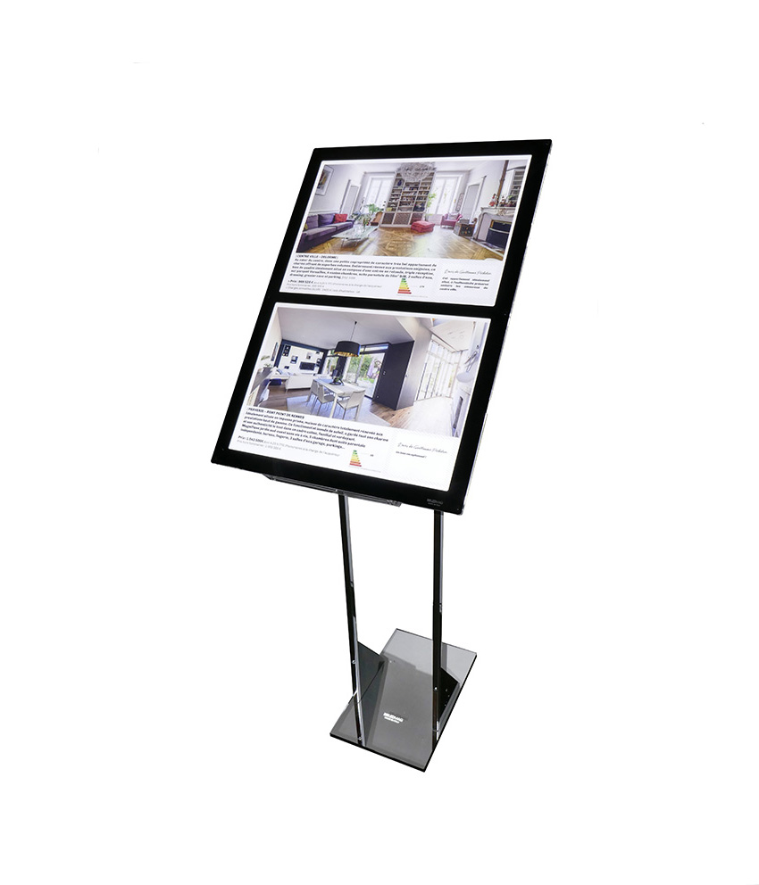 Porte Affiches les 7000 lumen contour Noir. Remplacement facile de vos annonces;Structure Tubulaire Chromé